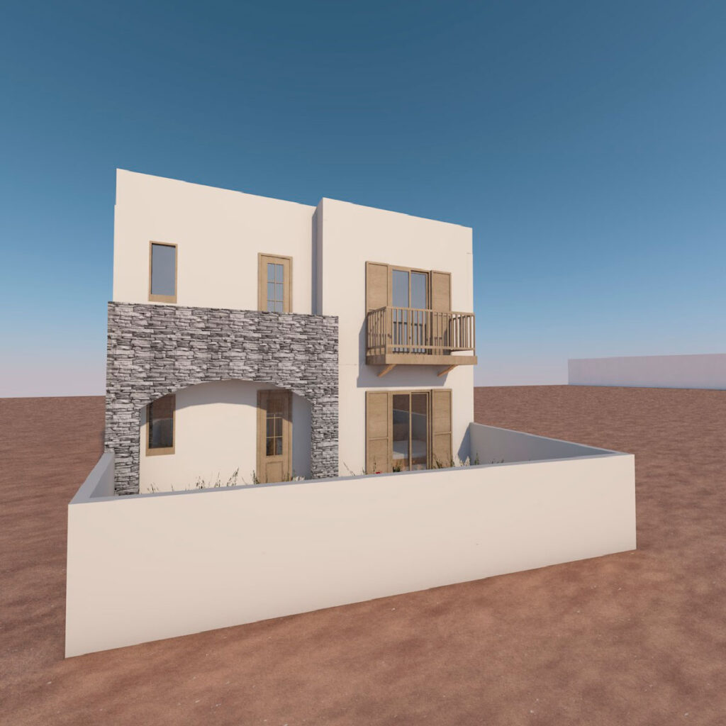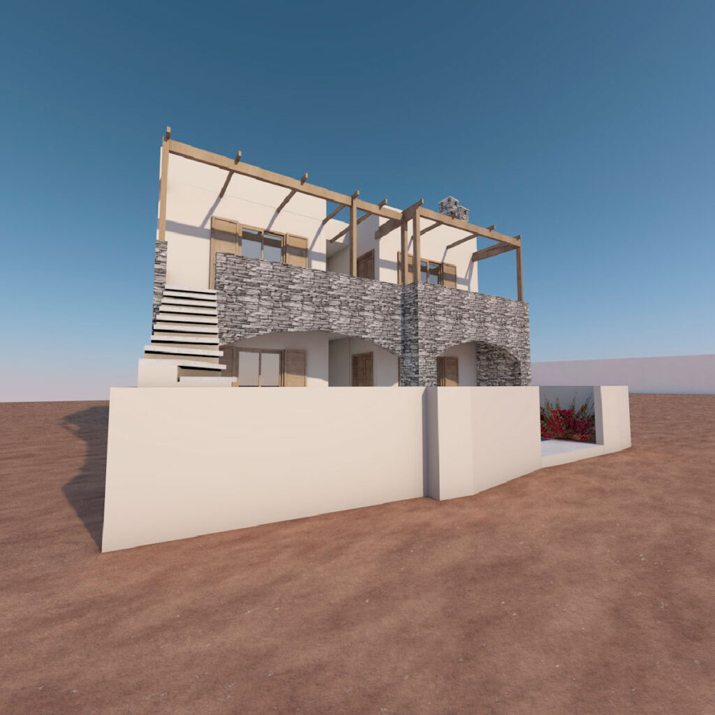 Ένα κτίριο με παραδοσιακή αισθητική, εμπνευσμένη από την κυκλαδίτικη αρχιτεκτονική. Ο συνδυασμός λευκών επιφανειών με πέτρινη τοιχοποιία δημιουργεί μια ισορροπία ανάμεσα στο φυσικό και το δομημένο περιβάλλον, αποπνέοντας αυθεντικότητα και αρμονία.