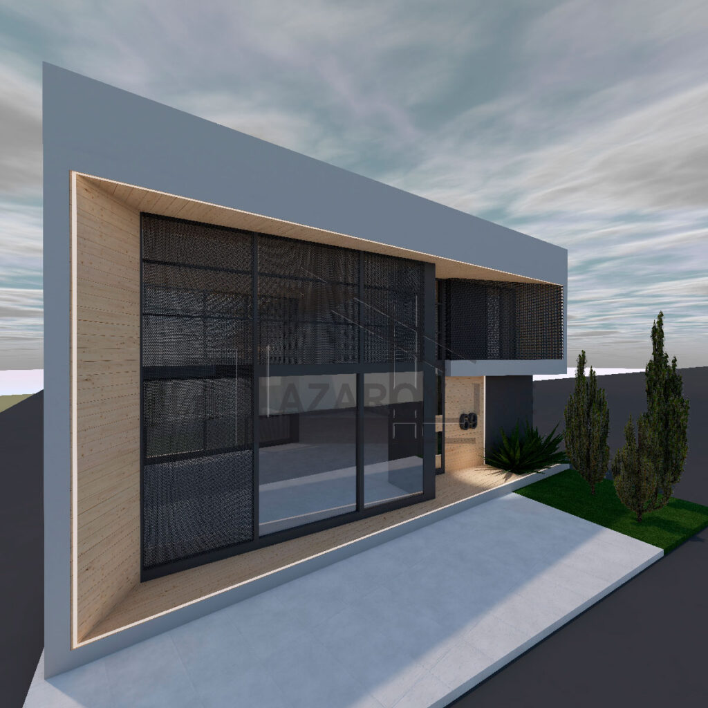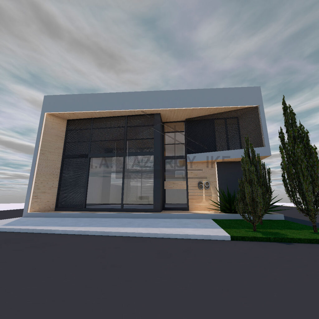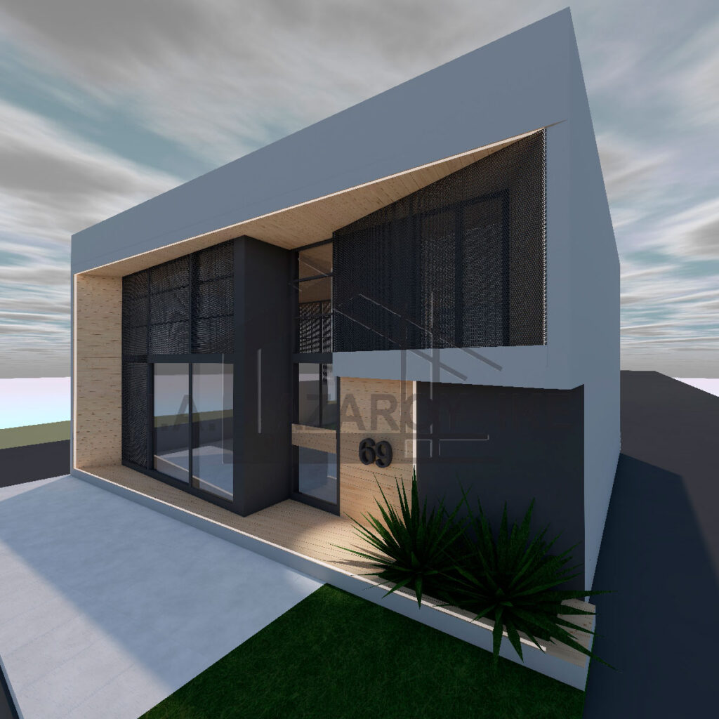 Το κτίριο αποπνέει μια σύγχρονη και minimal αισθητική, με καθαρές γεωμετρικές γραμμές και έναν αρμονικό συνδυασμό όγκων. Ο σχεδιασμός χαρακτηρίζεται από ασύμμετρες μορφές και δυναμικές προεξοχές που δημιουργούν μια αίσθηση κίνησης και μοντέρνας αρχιτεκτονικής έκφρασης. Η χρωματική παλέτα αποτελείται από λευκές και σκούρες επιφάνειες, οι οποίες ενισχύουν την αντίθεση και αναδεικνύουν τον λιτό και κομψό χαρακτήρα του κτιρίου. Οι μεγάλες γυάλινες μπαλκονόπορτες και τα διαφανή κιγκλιδώματα προσδίδουν αίσθηση ελευθερίας και διαφάνειας, επιτρέποντας τη μέγιστη εκμετάλλευση του φυσικού φωτός. Το τοπίο γύρω από το κτίριο είναι διαμορφωμένο με φυτεύσεις από κυπαρίσσια, τα οποία προσθέτουν ένα φυσικό στοιχείο που εξισορροπεί τη σύγχρονη αισθητική. Η περίφραξη με οριζόντιες ξύλινες γραμμές συμβάλλει στη δημιουργία ενός ζεστού και φιλόξενου περιβάλλοντος, ενώ η υψομετρική διαφοροποίηση του οικοπέδου ενισχύει την επιβλητικότητα της κατασκευής.